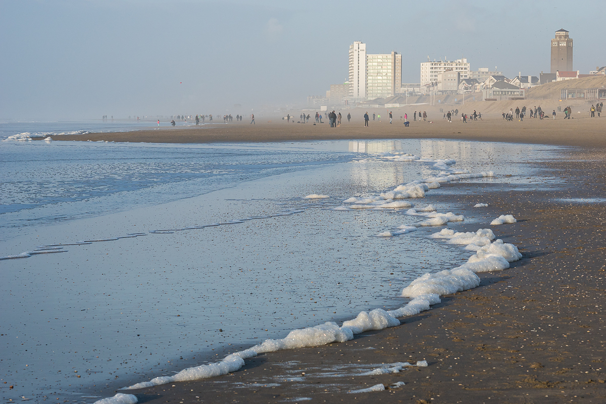 Hoi Loes, wat zijn jullie (jij) toch altijd origineel. Echt leuk is dat. En ook stoer trouwens, met zulk weer op het strand en dan ook nog nat worden, niets voor mij. De foto's zijn ook apart geworden, ik vind de telelensfoto's wel mooier gelukt dan de eerdere. Misschien dat ik dat vind omdat die eerste foto's zo op 'gewoon' zeepsop lijken alhoewel ik foto 3 dan wel weer heel mooi vind. Jammer dat je geen Drieteentjes trof maar dat hebben jullie goed opgelost door toch weer schuim te gaan fotograferen met de tele met een verrassend fraai resultaat.